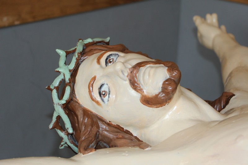 Suite à la chute de la croix, le bras gauche a été cassé.