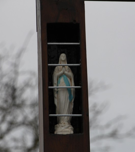 La croix est fixée par 2 barre de fer plantées dans un bout de l'ancienne