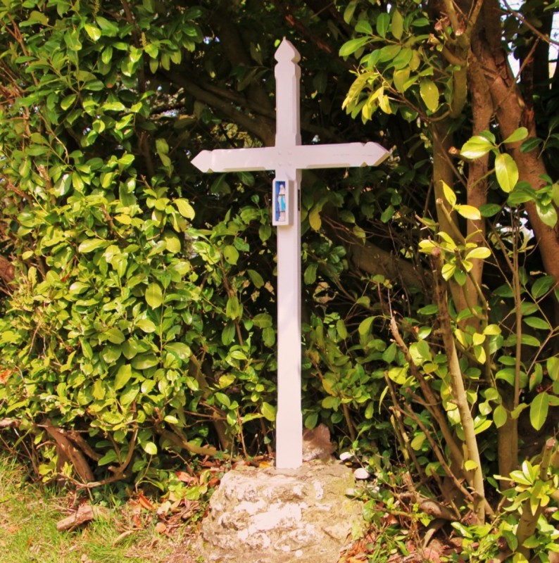 La croix a été refaite en chêne avec une chapelle pour la statuette de la vierge.