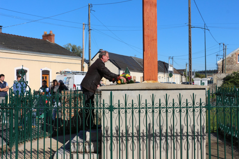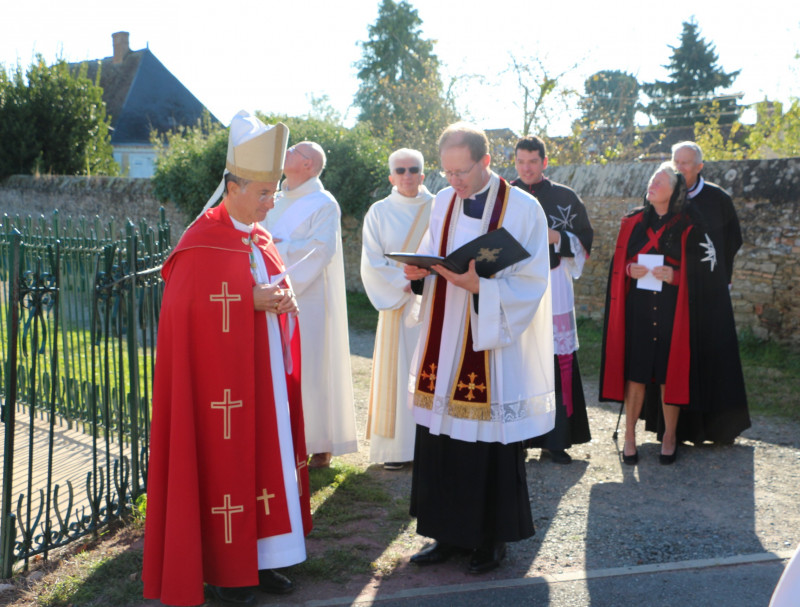 Bénédiction de la croix par monseigneur Vuillemin évêque du Mans en la présence de Mr le maire Mr D'Aillières et de nombreux suzerains.