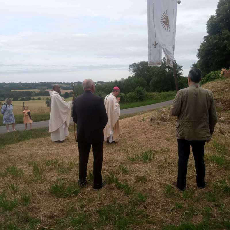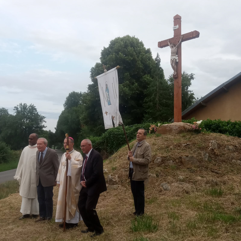 Bénédiction de la croix par l'évêque du Mans Jean Pierre Vuillemin.